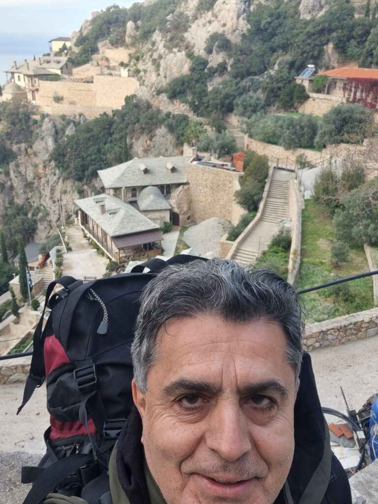 Αποφασίσαμε η τριάδα της γνωστής φιλικής μας παρέας στο φετινό μας προσκύνημα να πορευτούμε διαφορετικά.Οι δύο ημέρες της ετήσιας παραμονής να γίνουν τρείς.Έτσι κάναμε πρόγραμμα για την < έρημο> όπως αποκαλείται η περιοχή στο Περιβόλι της Παναγιάς,στο Θεοβάδιστον Άγιον Όρος, όπου η επικοινωνία γίνεται μόνο πεζή ή με μουλάρια.Η εμπειρία μοναδική,προσκύνημα,κατάνυξη,γαλήνη και απέριττη φυσική ομορφιά.